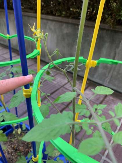 まだ、青々としたかわいいミニトマトの実ができていました。