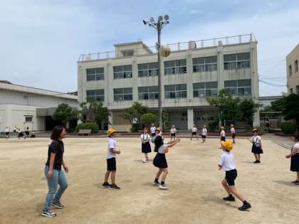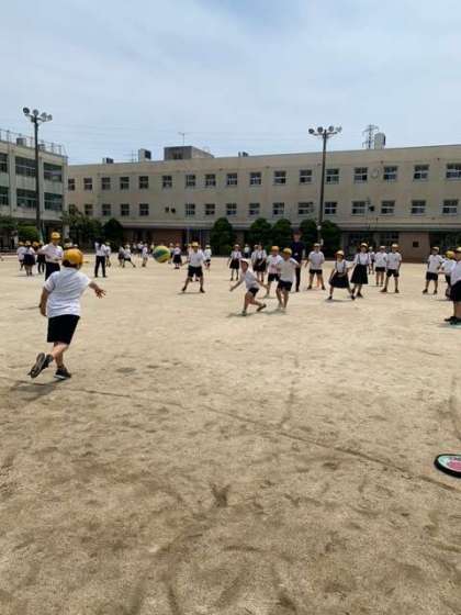 先生を誘ってバレーボールをする子たち、みんな遊びでドッジボールをするクラスなど元気な声を出して楽しんでいました。