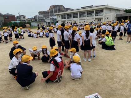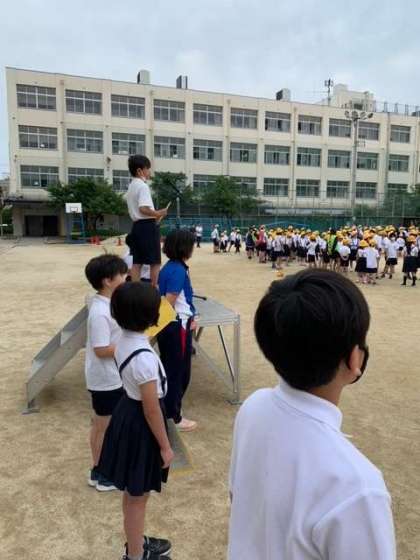 縦割り班で、低学年から高学年まで一緒のグループになって、○か??かを話し合っている姿が微笑ましかったです。