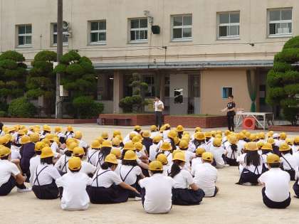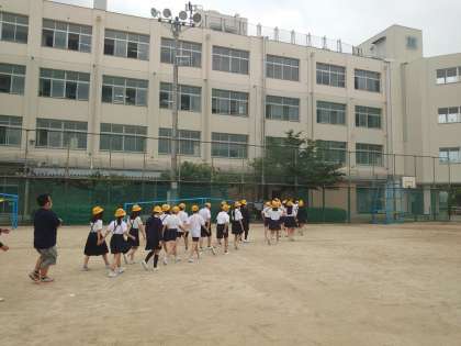 はじめに運動場に避難して、次に津波から身を守るために校舎の上の階に避難します。先生達の指示をよく聞いて、静かにすばやく移動することができました。