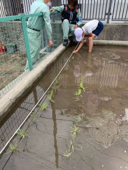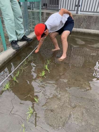 田植えの後、感想を聞いてみると「足がヌメヌメした。」「楽しかった!」「足が抜けないと思うくらい重たかった。」など、色々と返ってきました。