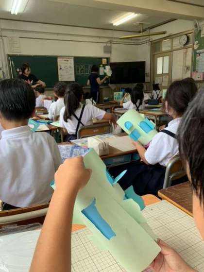 工作用紙を切って、折り曲げて、色々な形の窓を作りました。