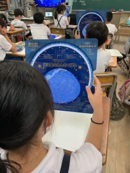星座早見盤を使って、星座の観察の仕方を学習しました。