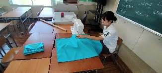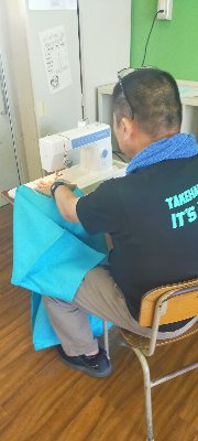 布を買う時も、予算が限られているので何軒も店を回ってやっといい生地を見つけて購入したそうです。児童からは見えないところでもう運動会の準備が始まっています。10月になって、運動会の練習の後、この「法被」を手渡された時の子どもたちの顔が目に浮かぶようでとても楽しみです。