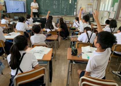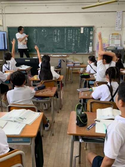 4年生では、国語科の授業の中で、大桐小学校の良いところをクラスの中で話し合っていました。子どもたちからは、「あいさつができる」「みんな優しい」「自然が多い」「図書館がいい」「だいどうワクワク大冒険がある」などの意見が出ていました。感心したのは、どの子も、大桐小学校の良いところを言うだけでなく、そう考えた理由もしっかり言えていたことです。このような伝え方を積み重ねることが、非常に大切です。