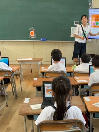 1年生は、一人一台端末(Chromebook)を利用して、teamsへの入り方や、心の天気の使い方を先生から教わっていました。ICTの活用については、ICTの活用経験を積むだけでなく、アナログとの効果の比較、子どもたちにつけたい力を見極めながら推進することが大切です。