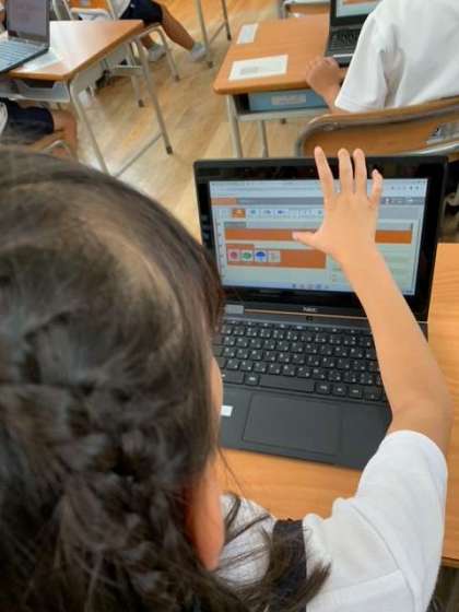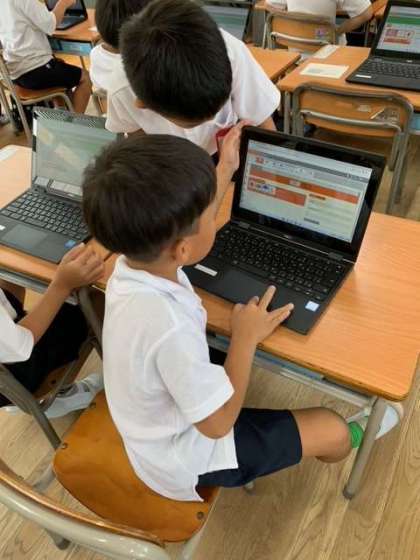 低学年の子どもたち一人ひとりに操作方法を指導するのは、なかなかのマンパワーがいります。担任の先生だけでなく、入り込みの先生からも助けてもらいながらがんばっていました。