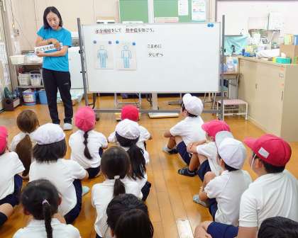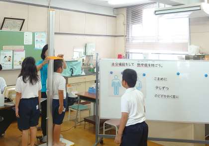 各学年、2学期の発育測定をしていっています。測定の前には、熱中症予防についての保健指導もあわせてしています。今日は2年生が測定をしました。1学期から背がどれぐらいのびているかと楽しみにしていました。