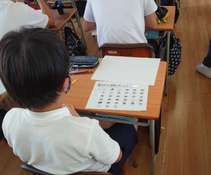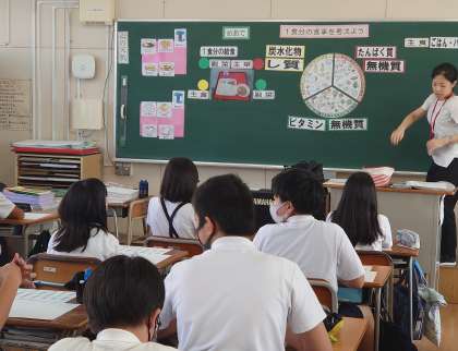 栄養教諭による食育の授業がありました。今回は、栄養バランスも含め、主菜・副菜・主食の組み合わせを考え、一食の献立を作る学習をしました。自分も食事を楽しめるよう、工夫して組み合わせていました。