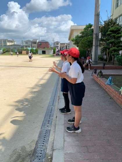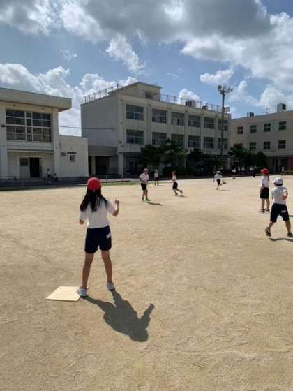 4年生の体育は、キックベースボールをしています。今日は、チーム毎で練習した後、ゲームをしました。協力し合って楽しく活動していました。応援している様子も大変良かったです。(写真下)