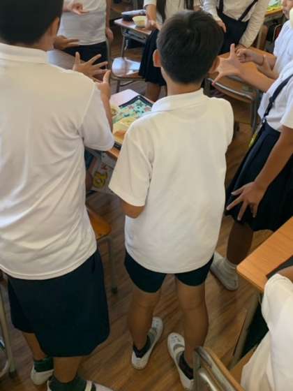 給食時間の5年4組の様子です。