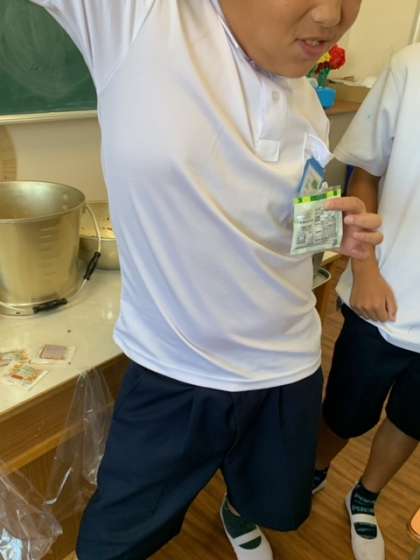 教室にお邪魔すると、「お茶めな大豆(写真上)」ジャンケンが始まっていました。牛乳ジャンケン、ヨーグルトジャンケンなどその日の献立で色々ですが、なかなか盛り上がります。