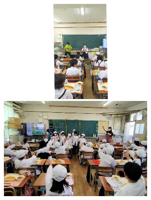 今日の献立の連絡やいただきますの挨拶も司会の児童が上手にすすめています。今日が、お誕生日の子がいる学級では、牛乳で「かんぱーい」している姿もありました。