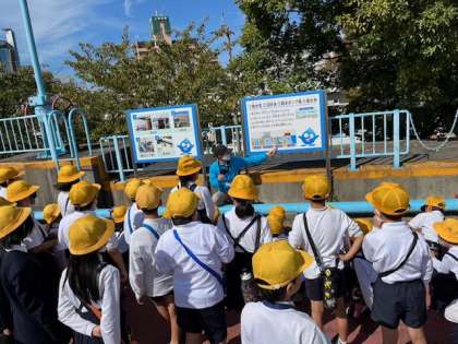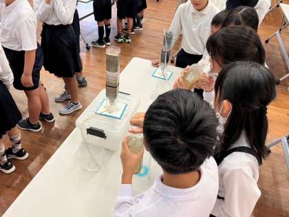 今回は、柴島浄水場の見学です。初めにシアターを見せてもらいました。その後、施設の方に淀川の水を浄水するまでの流れを教えてもらったり、様々な体験活動もさせてもらったりしました。