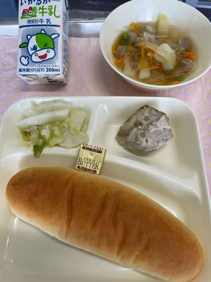 「かつおのガーリックマリネ焼き」は卵アレルギーのある児童生徒も食べることができるノンエッグドレッシングを使っています。にんにく、塩、こしょう(白)、ノンエッグドレッシングで下味をつけたかつおを焼き物機で焼きます。