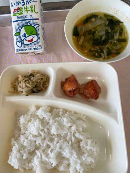 「鶏肉のチリソース焼き」は、鶏肉にしょうが汁、にんにく、砂糖、塩、こいくちしょうゆ、ケチャップ、トウバンジャンで下味をつけ、焼き物機で焼きます。