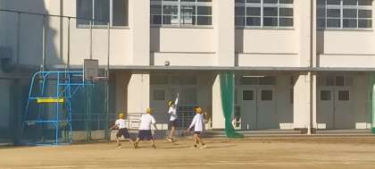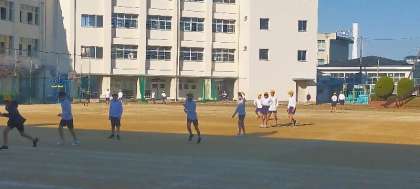 運動会が終わって初日の休み時間の様子です。運動会のテントもなくなってスッキリした運動場。青くて高い空の下、秋の涼しい風の中で、広々と運動場を使ってドッジボールやバスケットボール、おにごっこをして思いっきり遊んでいます。