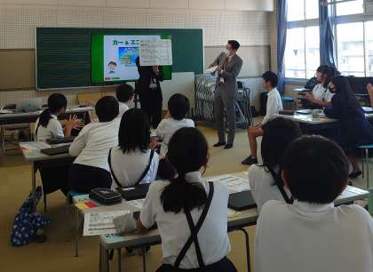 トヨタ自動車の方をお呼びし、出前授業をしていただきました。自動車と環境保全・SDGSの関係をテーマに、パソコンを使ったゲームやお話を通して、楽しみながら学習を進めていました。