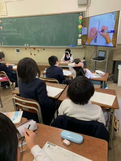 書画カメラの前で、作図にチャレンジする子もいました。