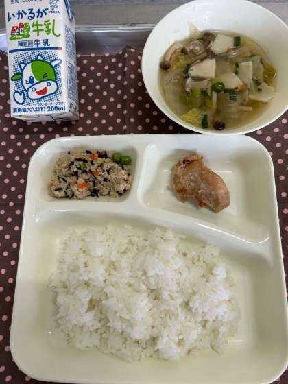 「高野どうふの入り煮」は、不足しがちな鉄を多く含む高野どうふの粉末を使用しています。豚ひき肉を加えて旨みを出し、にんじん、グリンピース、ひじきを加えることで彩りをよくしています。
