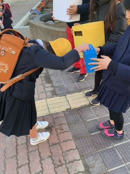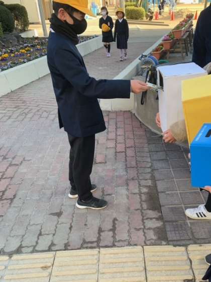 毎朝、玄関で代表委員会の子が、募金箱を持って立ってくれています。たくさんの子が、募金に協力してくれています。