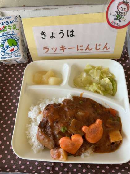 「ハヤシライス」は、児童生徒に大変人気のある献立の一つです。牛肉を主材に、小麦粉と綿実油で作る手作りのブラウンルウ、デミグラスソースなどで煮込み、仕上げます。
