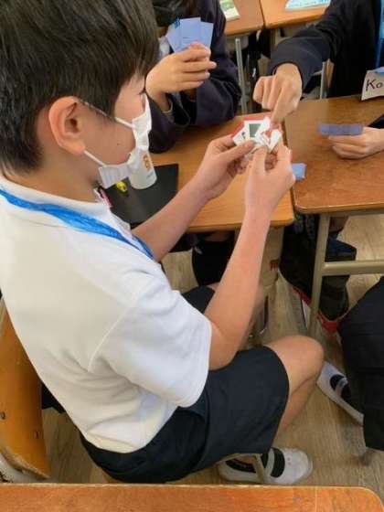 英語でコミュニケーションを取りながら、カードゲームをして楽しみました。