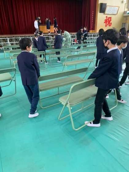 朝から、5年生が、先生や管理作業員さんらと一緒に、卒業式の会場準備をしてくれました。汗をかくほど、一生懸命頑張ってくれている人もいました。