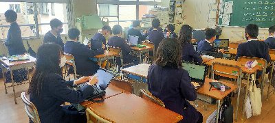 今日は、式の練習はなしにして教室で様々な活動をしました。写真は、クロームブックのデータ消去とアカウント削除の様子です。次の1年生に渡したときに、自分のアカウントや自宅のWIFIの情報が残ったままにならないように消去しているところです。最後のアカウント削除の場面では、「あー私のパソコンさよなら」と別れを惜しむつぶやきも聞こえました。