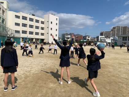 低学年でも、なかなかドッジボールは強いです。本気になって遊んでくれていました。