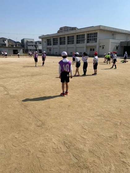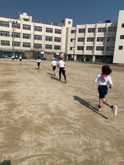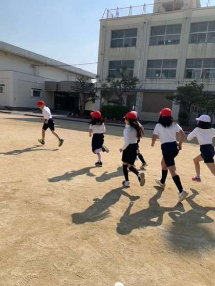 3年生の体育は、かけ足とラインサッカーです。