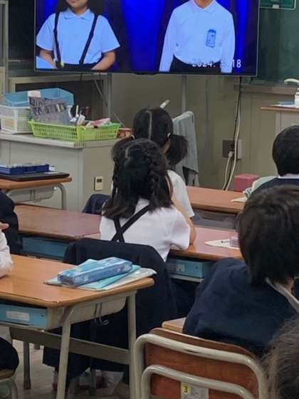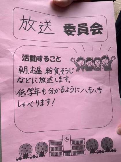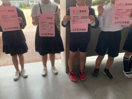 放送前に、準備していた委員長の人たちに、「みんなの力で、大桐小学校をよろしくね。日本1の学校にしてね。」と声をかけると、「はい。でも、日本1ちゃうで。世界1やで。いや、宇宙1やで!」と、頼もしい声が返ってきました。