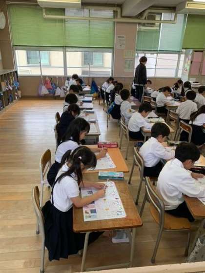 同じく、1年生、国語の授業風景です。お勉強も、リズムになってきたかな?