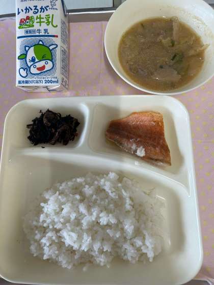 「ひじきのいため煮」は、ひじきとうすあげ、にんじんを砂糖、こいくちしょうゆで味付けしたいため煮です。食物繊維、カルシウムを多く含むひじきは、すすんで食べて欲しい食材のひとつです。