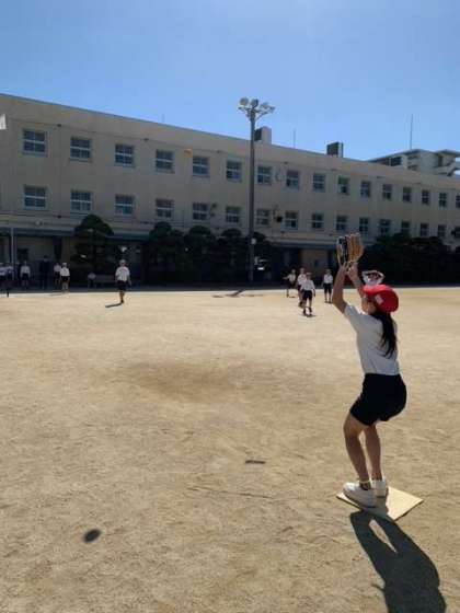 現在、メジャーリーグで無双状態で大活躍の大谷翔平選手。昨年、寄贈頂いたグローブを、クラブ活動(屋外スポーツクラブ)で使いました。