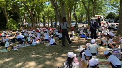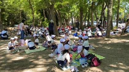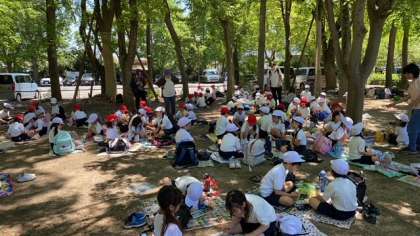 ?たくさんの学校が来ていますが、遊具などは順番をしっかり守って楽しめていました。