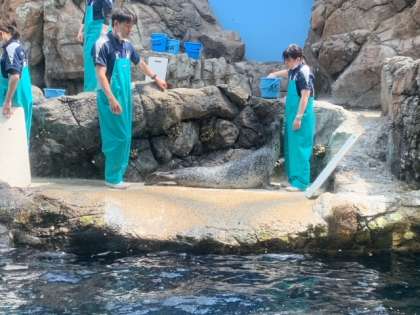 アシカさんのお食事タイムに、バッチリ時間が合いました!ラッキーです。