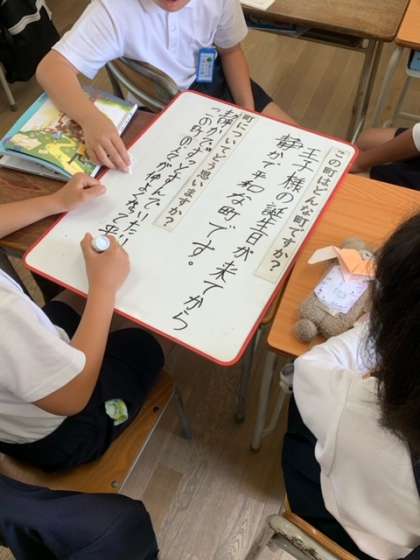 子どもたちは、読み取ったことを伝えるために考えをまとめたり伝えたりする活動を頑張っていました。