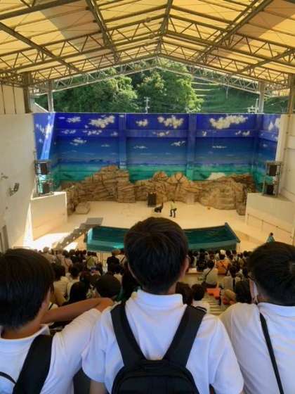 アシカーショーも楽しんでいます。アシカさんが、ご挨拶。写真下