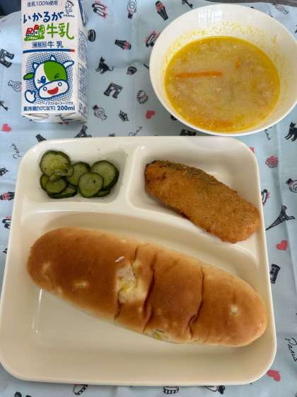 「豆乳スープ」は、ベーコンで旨みを増し、じゃがいも、玉ねぎ、コーン、にんじん、むき枝豆を使用した、豆乳のまろやかさを生かしたスープです。