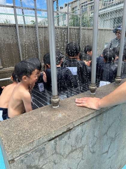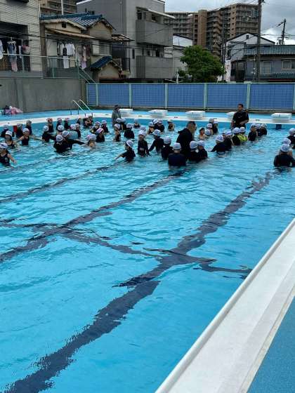1年生プールの様子です。はじめてのプールで大歓声があがっていました。