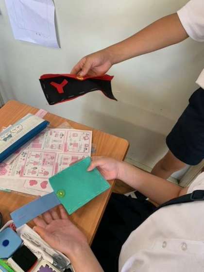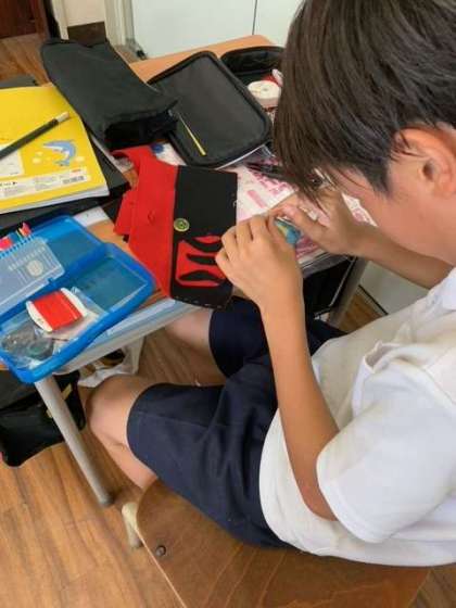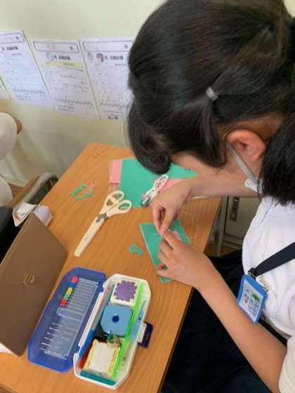 集中して取り組んでいました。クラブ活動やお家でもよくしているのでしょうか?中には、とても器用に制作している子もいました。経験しているうちに、少しずつ上達してきます。苦労は多いかも知れませんが、できた喜びを味わってくれると嬉しいです。