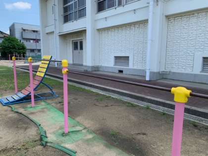 汗だくになりながら、子どもたちのいないこの時期にしかできない作業を計画的に進めてくれています。鉄棒の塗装、コンビネーション遊具の補修・塗装、1階廊下の各部屋の戸、給食室の児童の通るスペースの塗装などなどです。