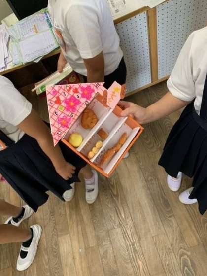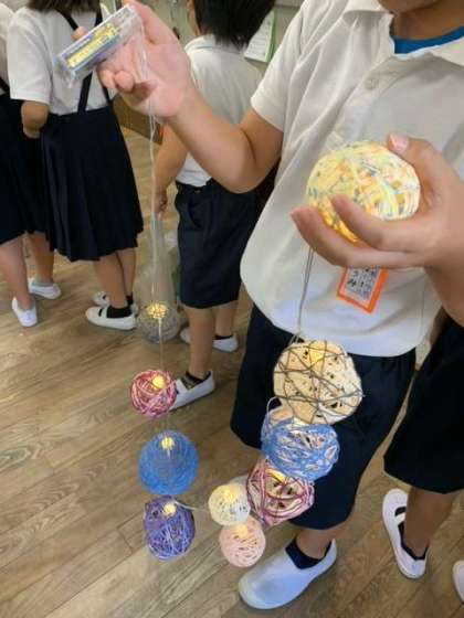 教室に飛び込むと、夏休みの自由工作を先生や友だちに紹介しているクラスが多かったです。