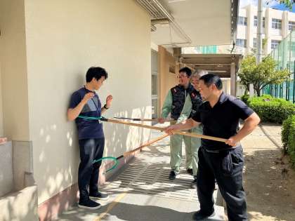 本日は防犯避難訓練の日です。教職員が不審者役・連絡担当・声かけ担当とロールプレイングを行います。児童の安全を守るために最善の方法を考えます。