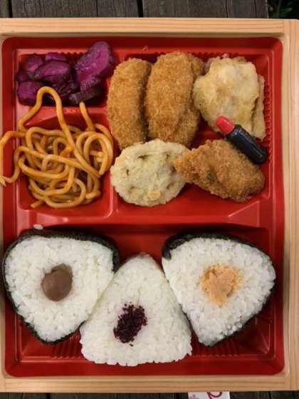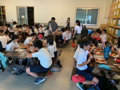 お弁当です!おにぎり3つは、子どもたちには、なかなかのボリュームのようです。