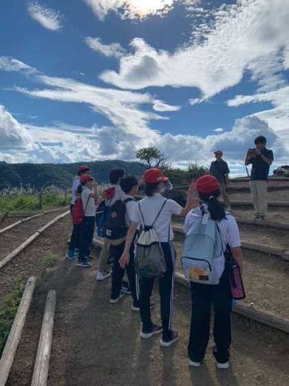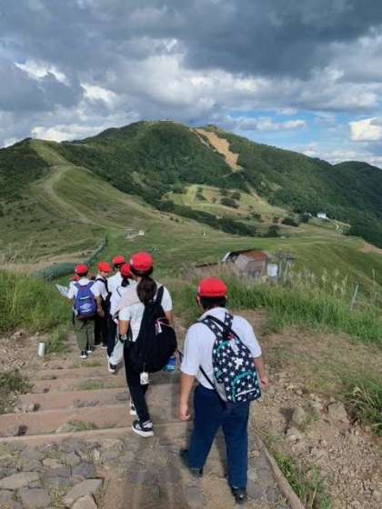 高丸山頂上に着きました!最後尾の班です。がんばりました!!