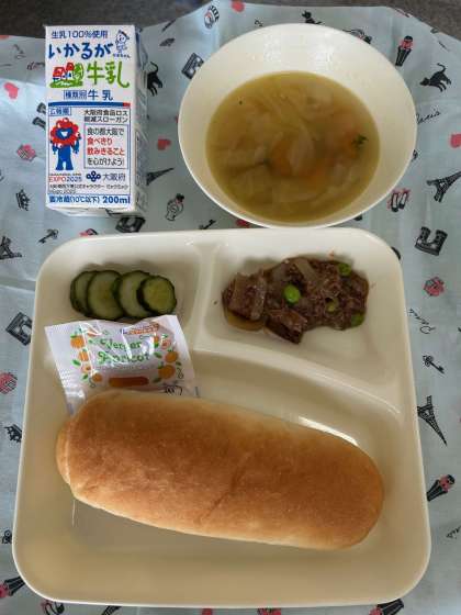 「牛肉のソース煮」は、にんにくを香りよくいため、ワインで下味をつけた牛肉、たまねぎをいためて煮こみ、水どき上新粉でとろみをつけ、トンカツソース、ウスターソースなどで味つけしてまろやかさと旨みを出しています。
