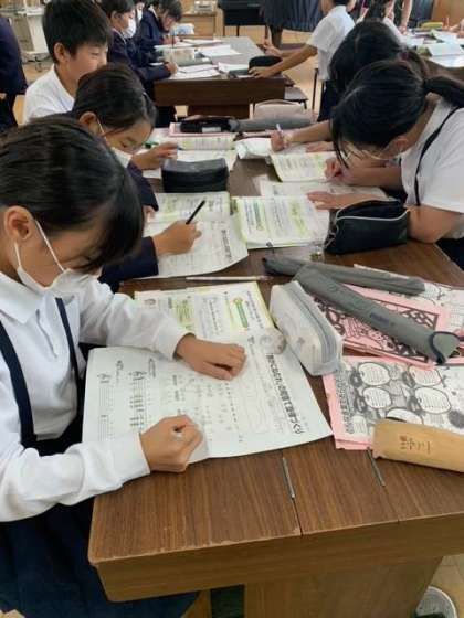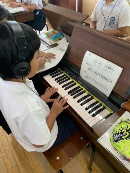 5年生の音楽の様子です。これまでに学んだ和音で旋律づくりに挑戦していました。