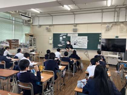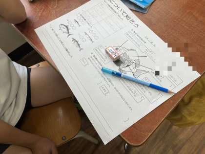 5年生の食育授業の様子です。5年生の授業のテーマは「魚のことを詳しく知ろう」です。魚の部位や、含まれている栄養素などをワークシートを使いながら学習しています。どんな魚料理が好きかという問いかけには、多くの挙手ありました。